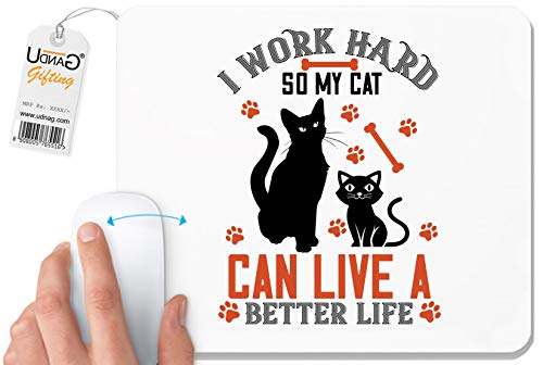 UDNAG - يو دي ان اي جي لوحة ماوس بيضاء قطة | أعمل بجد لذا يمكن لقطتي أن تعيش حياة أفضل للكمبيوتر - الكمبيوتر - اللاب توب [230 × 200 5 ملم] مطاط بوليستر