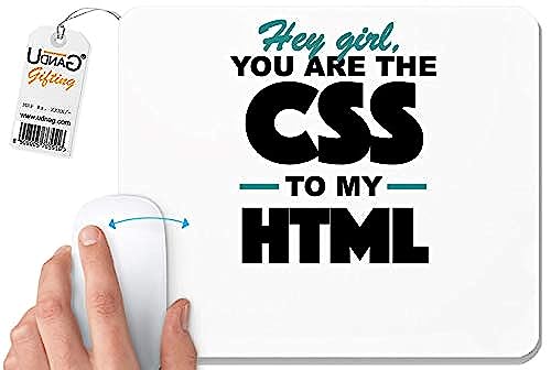 UDNAG - قاعدة ماوس بيضاء بتصميم عبارة عن المكودين "Hey Girl You are The CSS to My HTML" مناسبة للكمبيوتر واللاب توب [230 × 200 × 5 ملم] من يو دي ان اي جي، البوليستر