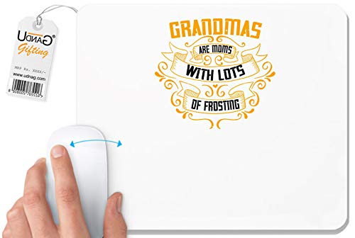 UDNAG - قاعدة ماوس بطباعة عبارة «Grandmas are Moms with Lots of» مستوحاة من الجدة، بتصميم مناسب للكمبيوتر الشخصي والمكتبي واللاب توب، مقاس 230×200×5 ملم بلون ابيض من يو دي ان اي جي، مطاط بوليستر
