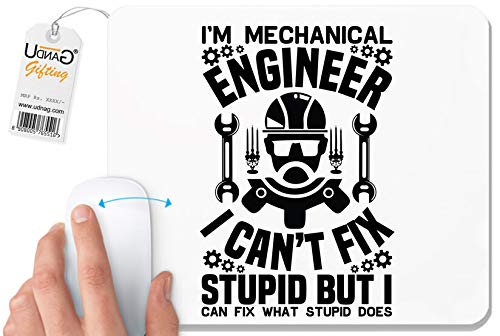 UDNAG - قاعدة ماوس بيضاء بطبعة مهندس ميكانيكي وعبارة "I'm Mechanical" للكمبيوتر واللاب توب من يو دي ان ايه جي [مقاس 230 × 200 × 5 ملم]، البوليستر