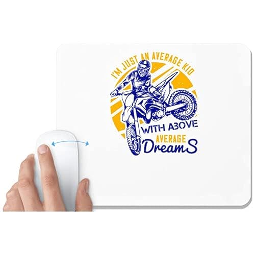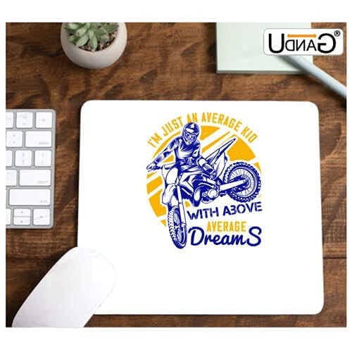 UDNAG - قاعدة ماوس بيضاء بطبعة رسمة موتوسيكل وعبارة "I'm just an Average Kid with Above Average Dreams" للكمبيوتر واللاب توب من يو دي ان ايه جي [مقاس 230 × 200 × 5 ملم]