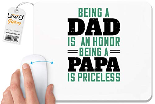 UDNAG - قاعدة ماوس بيضاء "بابا، الأب | كونه بابا" للكمبيوتر / الكمبيوتر / اللاب توب [230 × 200 × 5 ملم]، مطاط بوليستر