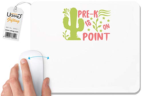UDNAG - قاعدة ماوس بيضاء بعبارة "Teacher Student | Pre-k is on Point" للكمبيوتر/واللاب توب من يو دي ان ايه جي [230×200×5 ملم]، لون ابيض، البوليستر