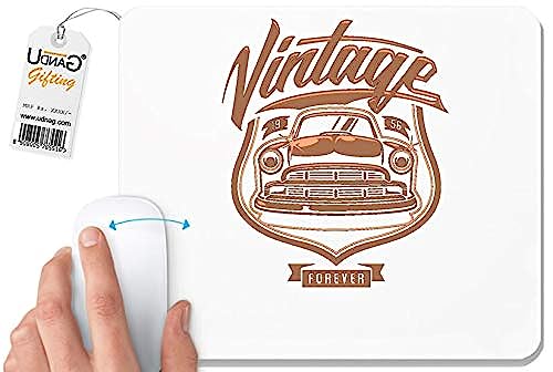 UDNAG - يو دي ان اي جي قاعدة ماوس بيضاء 'سيارة عتيقة | سيارة للأبد' للكمبيوتر - الكمبيوتر - اللاب توب [230 × 200 5 ملم] البوليستر