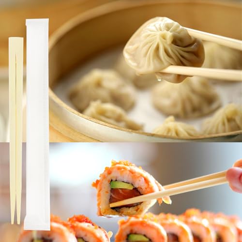 UEJYWUY - عيدان تناول الطعام للاستعمال مرة واحدة من يوجيوي، مغلفة بشكل فردي، عيدان طعام من خشب الخيزران للنودلز والسوشي والطعام الآسيوي، لون أبيض، مقاس 20 سم، 600 زوج