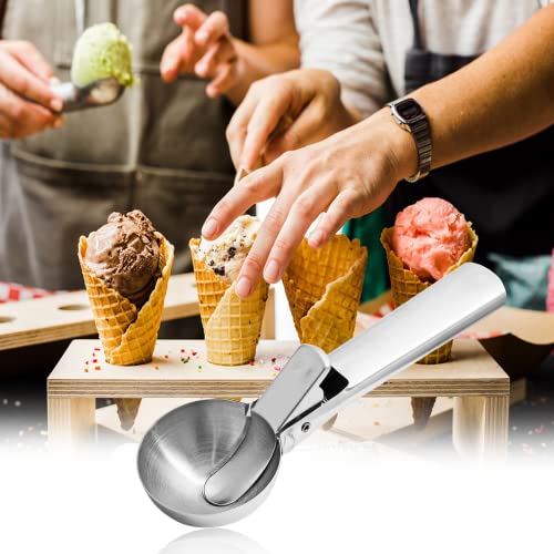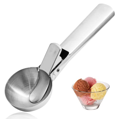 Uenhoy - مغرفة آيس كريم من الفولاذ المقاوم للصدأ من ينوي، مغرفة آيس كريم شديدة التحمل للزبادي المثلج والفواكه، مقاس كبير، لون فضي