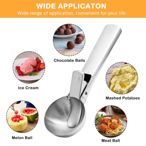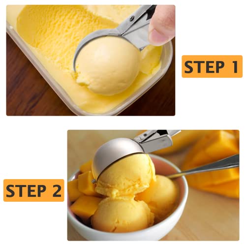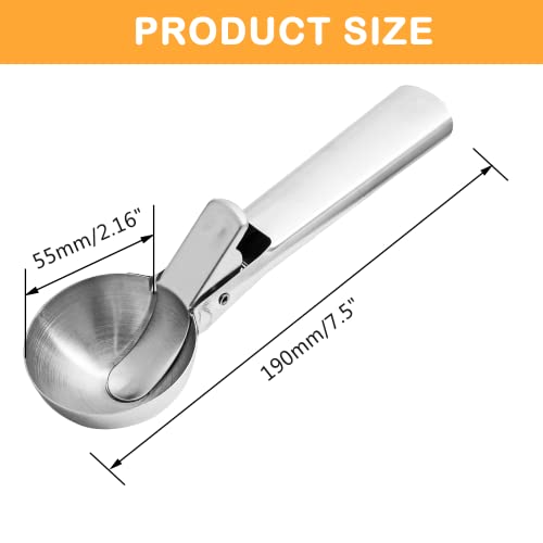 - مادة متميزة -- مغرفة الآيس كريم مصنوعة من الفولاذ المقاوم للصدأ عالي الجودة والآمن غذائيًا، متينة وآمنة، مع عمر خدمة طويل. قطر المغرفة 55 ملم، حجم مثالي لاحتياجاتك.