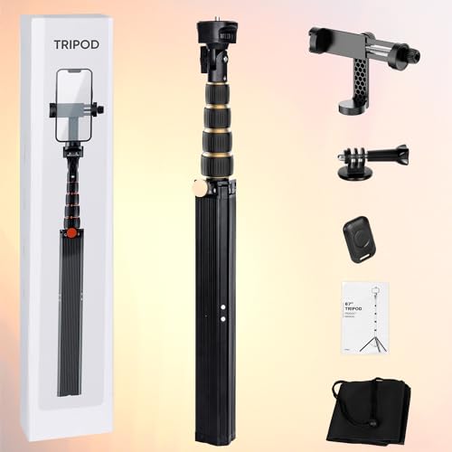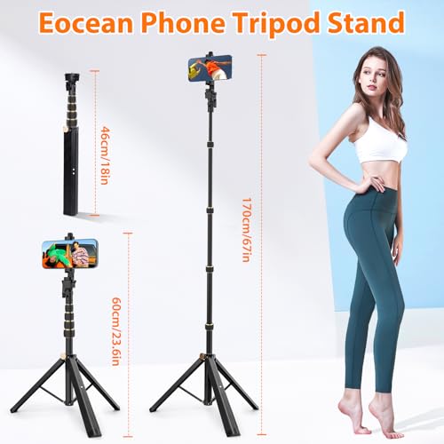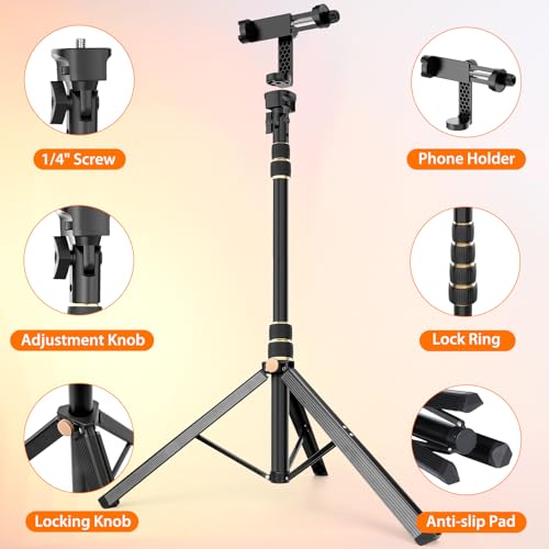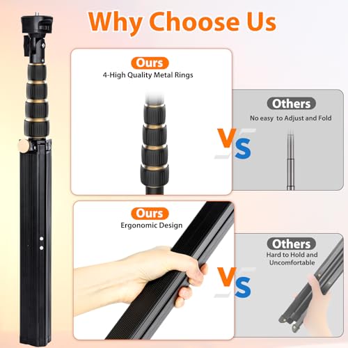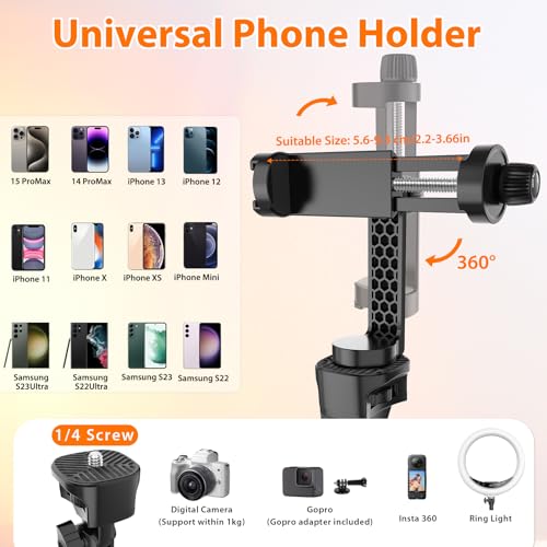 - 【حامل ثلاثي القوائم قابل للتمدد بطول 1.70 متر】حامل موبايل طويل أعلى من الحوامل الثلاثية الأخرى، قابل للتمدد من 46 سم إلى 1.7 متر. مزود بحلقات معدنية من 4 أقسام مع بطانات سيليكون ناعمة، ليكون أسرع وأكثر ملاءمة.