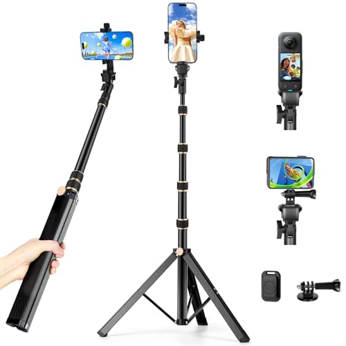 Ufanore - حامل ثلاثي القوائم 1.7 متر لموبايل آيفون، حامل قابل للتمديد مع جهاز تحكم عن بعد، حامل موبايل دوار 360 درجة، عصا سيلفي قوية من الألومنيوم بأرجل عريضة وأنبوب أكثر سمكًا، مقابض قفل ذهبية من انفانور