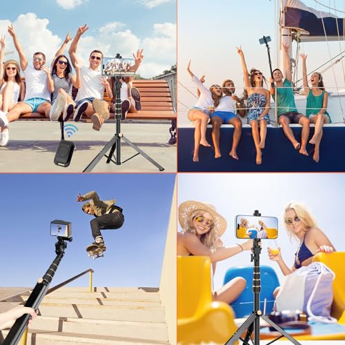 - 【غالق لاسلكي عن بعد】يأتي الحامل ثلاثي القوائم للهواتف مع غالق لاسلكي عن بعد يجعل يديك حرة تمامًا عند التقاط صور سيلفي أو أي لقطات جماعية. يسمح لك بالتقاط الصور بسهولة من مسافة تصل إلى 10 أمتار (33 قدم)، مما يجعله رفيقًا مثاليًا لك. (ملحوظة: جهاز التحكم عن بعد لا يناسب الكاميرات.)