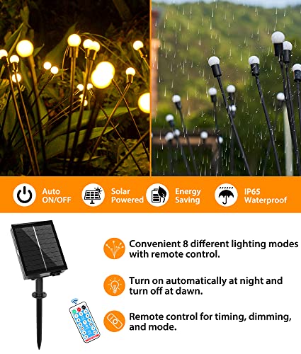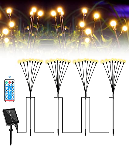 Ufanore - مصابيح حديقة مطورة تعمل بالطاقة الشمسية من يوفانور مع جهاز تحكم عن بعد ستار برست لتزيين الفناء والممرات والمناظر الطبيعية أبيض دافئ أربع عبوات