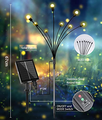 - 【مصابيح شمسية للديكور الخارجي وهدية مثالية】تجعل مصابيح اليراع المقاومة للماء بتصنيف IP65 منزلك وحديقتك يتألقان كل ليلة، مما يخلق أجواء رومانسية واحتفالية. يعد ديكور خارجي مثالي للباحات والساحات والمروج والأرصفة وأي مناسبة كحفلات الزفاف ورأس السنة والحفلات وغيرها. المصابيح الخارجية التي تعمل بالطاقة الشمسية هدية مثالية أيضاً لعيد الأم وعيد الحب والذكرى السنوية وأعياد الميلاد.