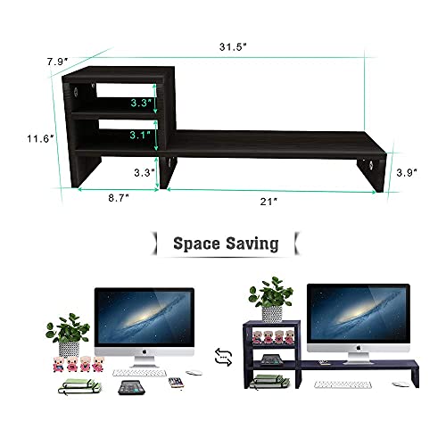 - مع 6 أجزاء قابلة للتوسيع، يعمل حامل الشاشة هذا كمنظم للمكتب بالإضافة إلى كونه رافعًا للشاشة. تسمح لك مساحة التخزين المكونة من 3 مستويات بتنظيم كل ما تحتاجه، سواء كان موبايل أو دفتر أو أوراق أو سماعات، بما في ذلك الكتب والملحقات والشواحن وكابلات الـ USB وأقراص الـ DVD والآلات الحاسبة والأقلام، بالإضافة إلى النباتات. يتميز الحامل برف طويل يلائم شاشات الكمبيوتر LCD بحجم 17 إلى 22 بوصة وأجهزة اللاب توب، وكذلك يمكن استخدامه كحامل للتلفزيون. يمكنك تنظيم الماوس ولوحة المفاتيح وملفاتك بشكل أفضل في مساحتي التخزين الموجودتين بالأسفل، مما يحميهم من الغبار ويجنبك فقدان البيانات.