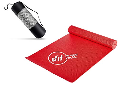 Ufit - سجادة لتمارين اليوجا من بلاستيك PVC مع شنطة حمل من يوفيت - 6 ملم، احمر