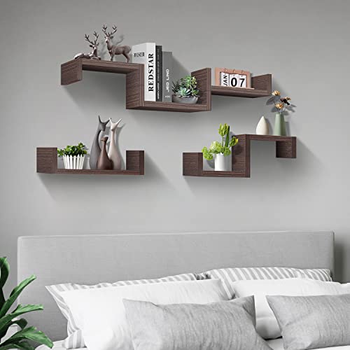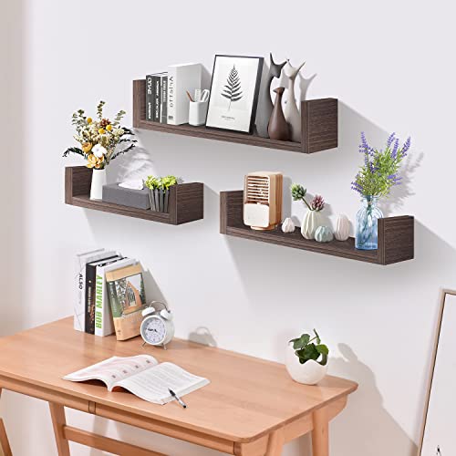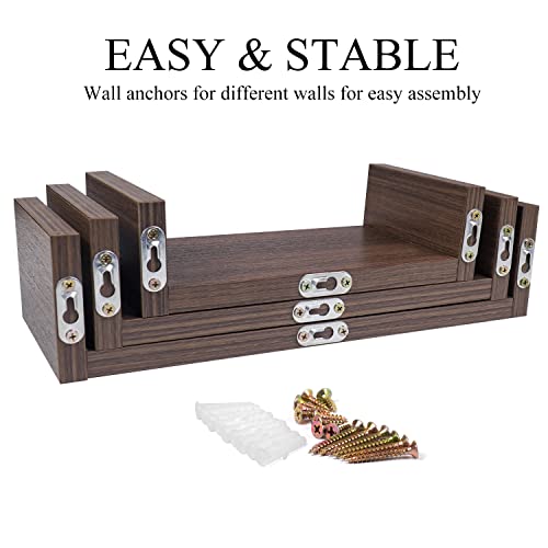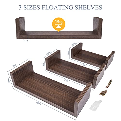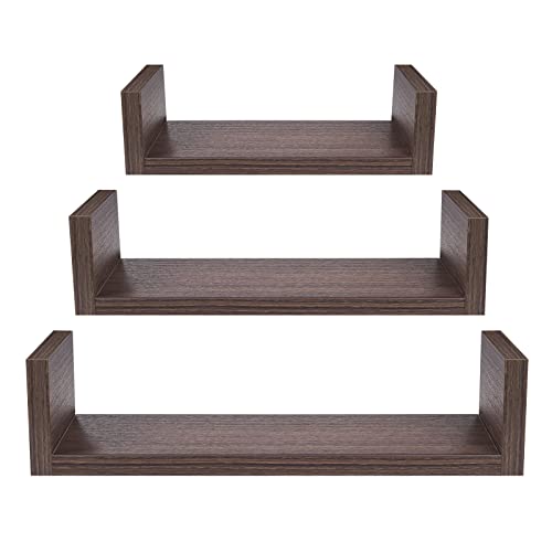 UFula - مجموعة ارفف عائمة للتعليق على الحائط من الخشب حامل ديكور انيق لغرفة النوم والحمام وغرفة المعيشة والمطبخ ومكتب المنزل وغرفة الغسيل 3 ارفف لون بني جوزي من اوفولا