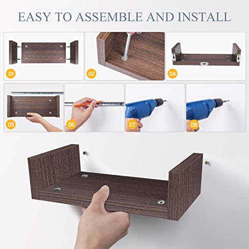 - سعة وزن قوية: كل رف عائم مصنوع من مادة خشبية سميكة لدعم ما يصل إلى 15 كجم. الأرفف العائمة متوافقة مع أنواع الجدران بما في ذلك الطوب والخرسانة والجدران الجافة ولوح الحائط والبراغي الخشبية.