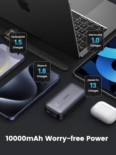 UGREEN - يوجرين باور بانك 30 واط 10000mAh، شاحن محمول USB C سريع الشحن مع كيبل 0.5 متر 60 واط، شاشة رقمية، بطارية خارجية محمولة متوافقة مع جالكسي S24 S23، ايفون 15 14، ايباد، ال جي، اسود