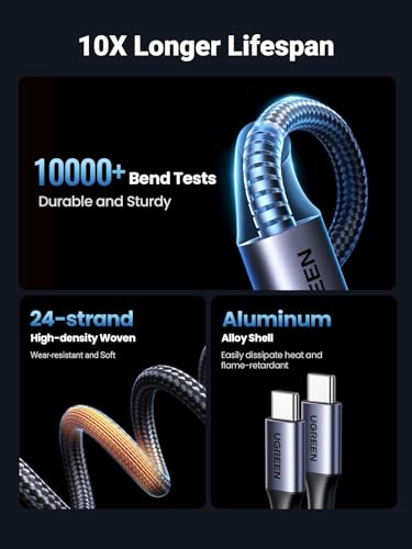 - جودة فاخرة: يضمن الكابل المضفر المصنوع من النايلون الصلب والمتين عمر خدمة أطول يصل إلى 10000 انحناء. وصلات USB نوع سي مزدوجة الجوانب مع دعم ضغط مدمج مصممة للاستخدام المتكرر. هيكل من الألمنيوم وسلك نحاسي عالي النقاء مع ثلاث طبقات حماية، تمنحك شحنًا سريعًا وآمنًا يدوم طويلًا