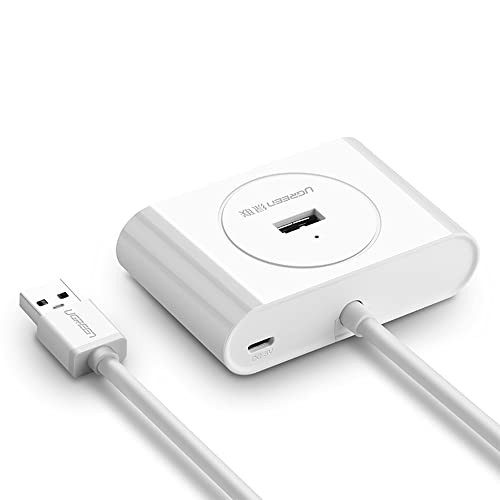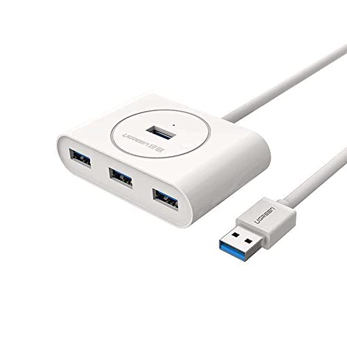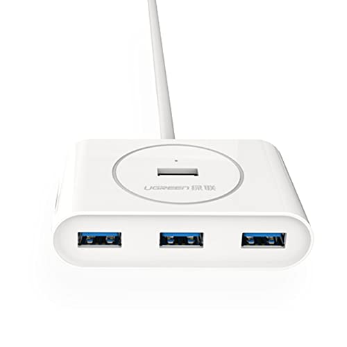 UGREEN - موزع USB 3.0 4 في 1 لنقل البيانات بسرعة 5 جيجابايت في الثانية من يوجرين للكمبيوتر واللاب توب والقرص الصلب الخارجي وذاكرة الفلاش ميموري ولوحة المفاتيح (0.5 متر) - أبيض