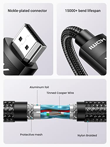 - 【متانة فائقة】: مصنوع من موصلات فاخرة مطلية بالنيكل وغلاف مضفر بالنايلون عالي الجودة، يمكن لكابل الشاشة HDMI هذا أن يتحمل اختبار الثني المتكرر دون تقليل مرونة الكابل وضمان عمر افتراضي طويل