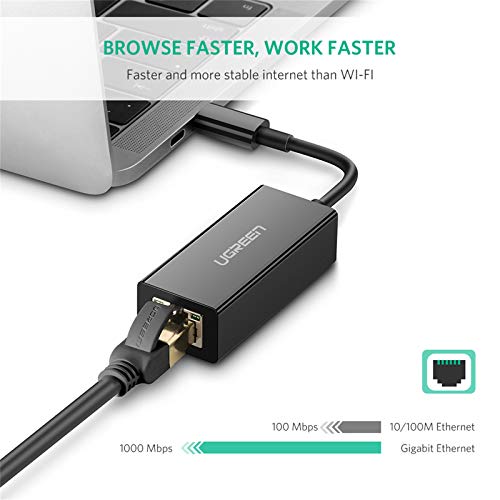 UGREEN - محول شبكة خارجي جيجابت ايثرنت بمنفذ USB نوع C بسرعة 10/100/1000 ميجابت لكل ثانية من يوجرين، لون أسود موديل 50307