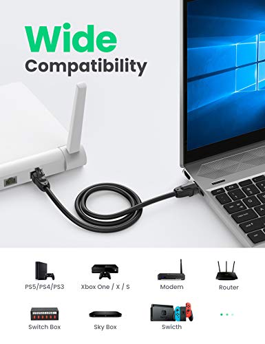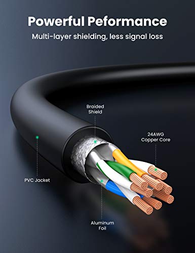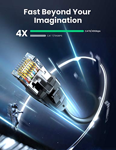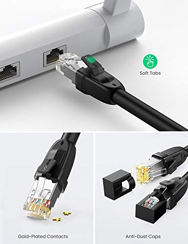 UGREEN - كيبل ايثرنت الفئة8 24AWG ار جيه 45 محمي من يوجرين بطول 3 متر للشبكة المحلية السلكية وتردد 200 ميجاهرتز للمودم راوتر كمبيوتر ماك لاب توب 2000 بلاي ستيشن 2 و3 و4 و5- اسود م RJ45