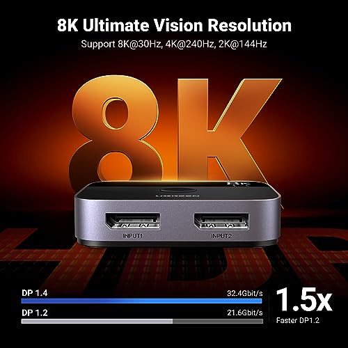 UGREEN - محول منفذ عرض 8K DP 1.4 ثنائي الاتجاه 2 في 1 يدعم 8k عند 30 هرتز 4K 240 فري سينك جي للكمبيوتر واللاب توب مع كابل واحد وكابل USB نوع سي من يوجرين