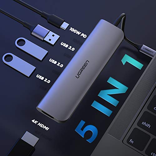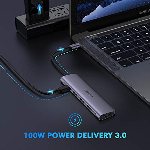 UGREEN - موزع USB نوع C 3.1 مع 4K HDMI 3 USB 3.0 100 وات من يوجرين، منفذ شحن USB C لسامسونج جالاكسي S9 ماك بوك برو 2018 ميت بوك X برو ديل Xps 15 13 HP سبيكتر انفي لينوفو يوجا 720
