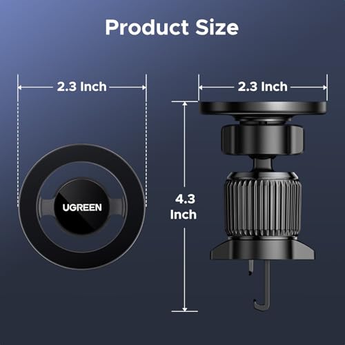 UGREEN - حامل موبايل مغناطيسي لفتحة التهوية للسيارة متوافق مع ماج سيف متوافق مع آيفون 17 برو ماكس سلسلة اير و16 و15 و14 و13 و12 مع ألواح معدنية من يوجرين، أسود