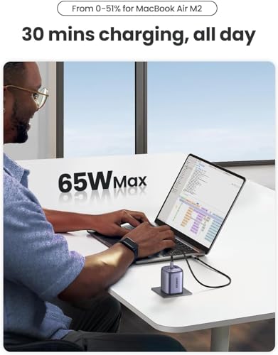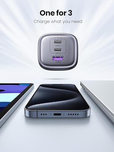 UGREEN - رأس شاحن نيكسود برو بتقنية الشحن السريع بـ3 منافذ 65 وات من يوجرين، رمادي/أسود