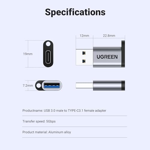 UGREEN - محول من USB نوع سي انثى الى يوجرين عدد المنافذ: 2 رمادي