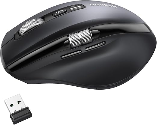 UGREEN - ماوس لاسلكي اتصال بالبلوتوث مع تردد 2.4 جيجا، تمرير فائق السرعة، 5000 نقطة في البوصة، 5 أزرار، اتصال على بُعد 10 متر، متوافق مع ويندوز ولينكس وماك او اس وأندرويد وكروم من يوجرين