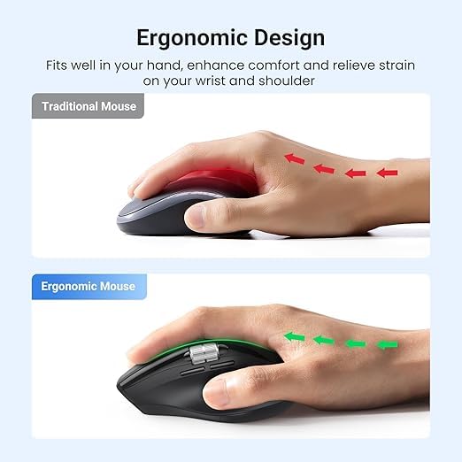 - 【تصميم مريح】يناسب محيط الماوس اللاسلكي المريح راحة اليد بشكل طبيعي، مما يقلل بشكل كبير من الألم الناجم عن ثني المعصم. يعتمد الجانب على تصميم مطاطي ناعم، وهو مريح للحمل. بالإضافة إلى ذلك، يتميز ماوس يوجرين بتقنية النوم الذكي. إذا لم يتم استخدامه في غضون 10 دقائق، فسوف يدخل تلقائيًا في وضع توفير الطاقة ويمكن إعادة تنشيطه عن طريق تحريك الماوس أو الضغط على أي زر.