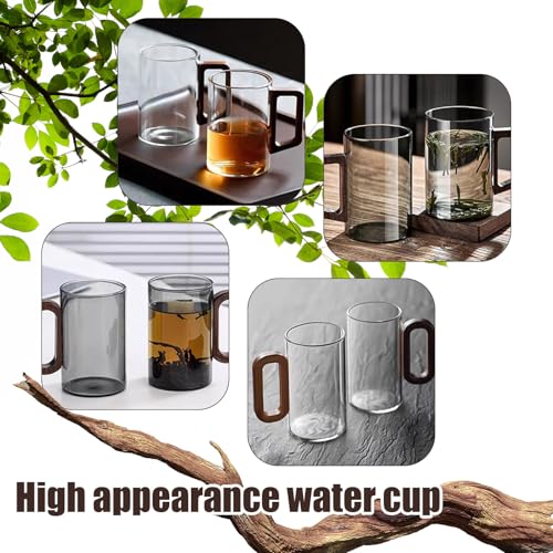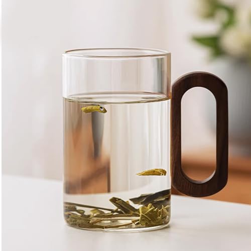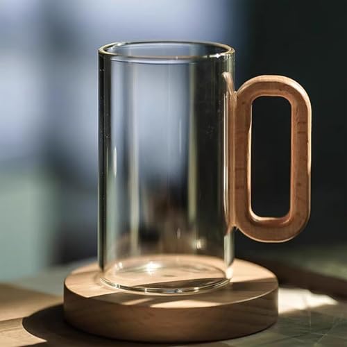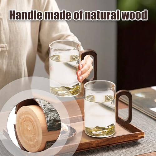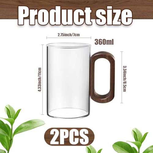 UgyDuky - مج قهوة زجاجي بمقبض خشبي، كوب من زجاج البوروسيليكات للكابتشينو واللاتيه والاسبريسو، كوب عصري مقاوم للحرارة للمنزل أو المكتب بسعة 360 جم من اوجي دوكي، قطعتين (شفاف)