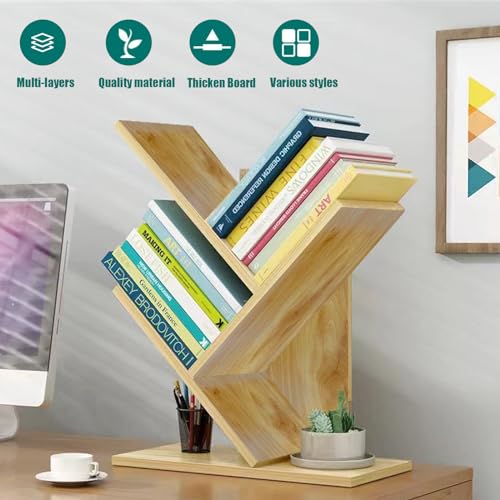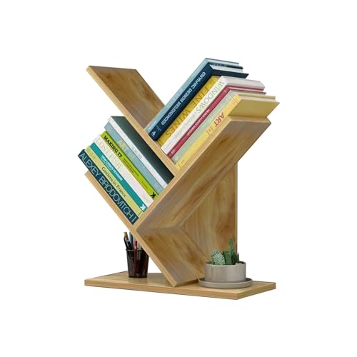 UgyDuky - اوجي دوكي رف كتب خشبي من 3 طبقات على شكل شجرة، رف منظم تخزين كتب خشبي قائم على الارض، رف تخزين كتب خشبي منظم متعدد الاستخدامات للمكتب والمنزل والمدرسة وعرض الكتب والاقراص المضغوطة والبومات (خشب الجوز)
