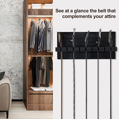 UGZOO - منظم أحزمة للدولاب، حامل أحزمة مقاوم للانزلاق يثبت على الحائط لـ9 أحزمة، منظم أحزمة موفر للمساحة لتنظيم الدولاب مع أدوات التركيب مقاس 30 × 14 × 6 سم بلون أسود من يو جي زد او او