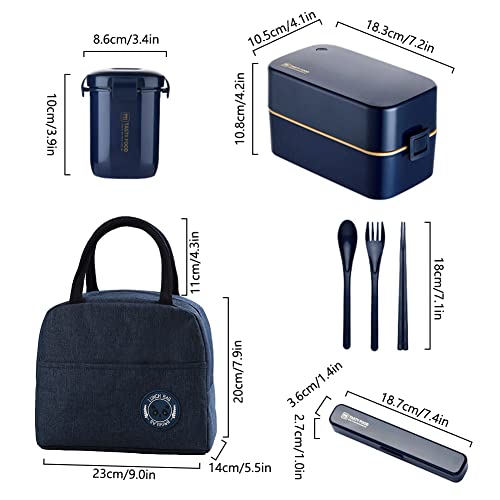 UHAPEER - مجموعة لانش بوكس بينتو من طبقتين مع شنطة لانش باج وأدوات مائدة، لانش بوكس بينتو محمول ومانع للتسرب وبمساحات تخزين قابلة للتعديل للبالغين والأطفال للعمل والمدرسة من يوهابير