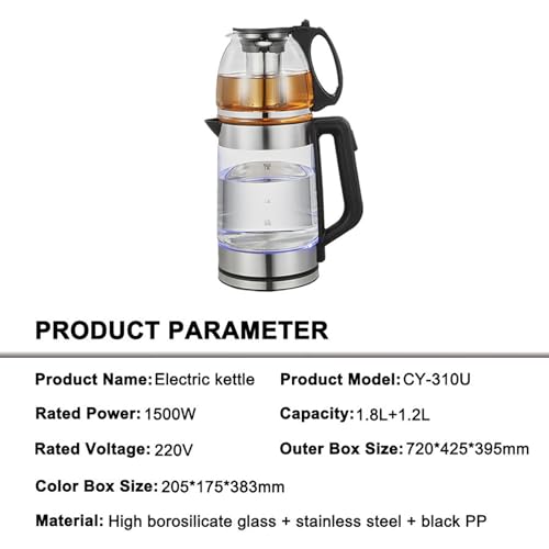 UHGFIMP - غلاية شاي زجاجية كهربائية ذاتية الفلترة من طبقتين بنمط ساموفار مع إبريق شاي تركي من يو اتش جي اف اي ام بي، سخان مياه