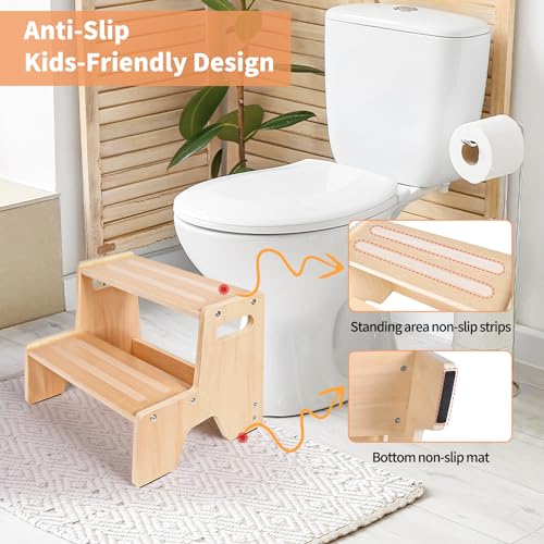Uiirvdy - كرسي خشب صغير للحمام بدرجتين للأطفال الصغار بتصميم مضاد للانزلاق من يويرفدي