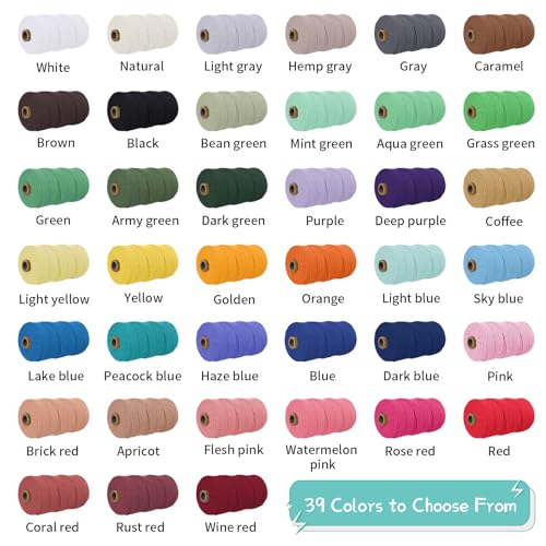 - 💖 39 لونًا للاختيار من بينها: خيط مكرمية 2 ملم له ألوان متعددة للاختيار من بينها، مجموعة واسعة من الاستخدامات، رائع للمبتدئين ومحبي الحرف اليدوية.
