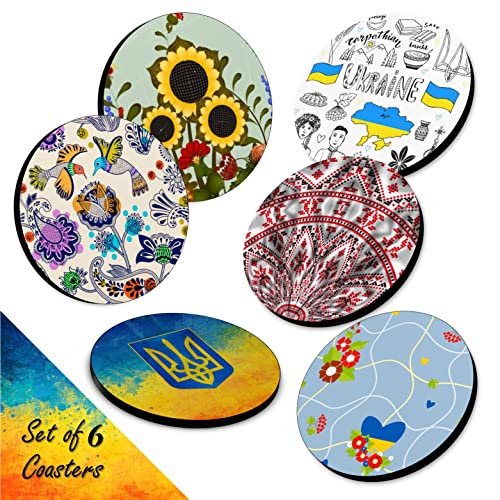 Generic - طقم قواعد اكواب دائرية خشبية لمحبي اوكرانيا - 6 قطع -CW-25