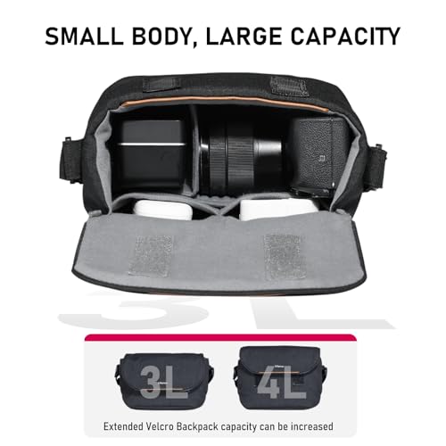 - 【حقيبة كتف أنيقة للكاميرا】شنطة الكتف خفيفة الوزن هذه مثالية للرحلات القصيرة وتوفر وظائف عملية للمصورين. أحزمة كتف مبطنة معززة وقابلة للتعديل توفر الراحة والتنوع. من خلال إزالة الفاصل الداخلي، يمكنك بسهولة تحويلها إلى حقيبة كتف أنيقة للاستخدام اليومي