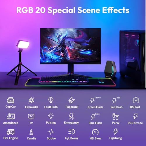 - 【ضوء فيديو RGB كامل الألوان】: مصباح فيديو LED RGB من اولانزي LM-P40. يسمح بتعديل اللون وتشبع اللون الكامل بفضاء لوني ار جي بي 0-360 درجة، والتحكم في درجة حرارة اللون 2500-6500 كلفن، وسطوع قابل للتعتيم من 0 إلى 100%. مع 20 تأثير إضاءة، يمكنك ضبط درجة حرارة اللون والسطوع بسرعة عبر المقبض.