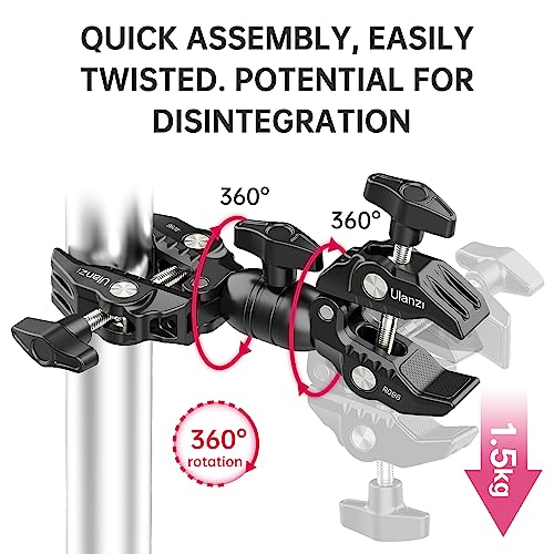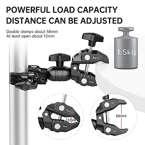 ULANZI - ذراع سحري R096 مع مشبك فائق، كاميرا ثلاثية القوائم مع راس كروي مزدوج 360 درجة، لحامل ثلاثي القوائم وعاكس التصوير الفوتوغرافي من يولانزي