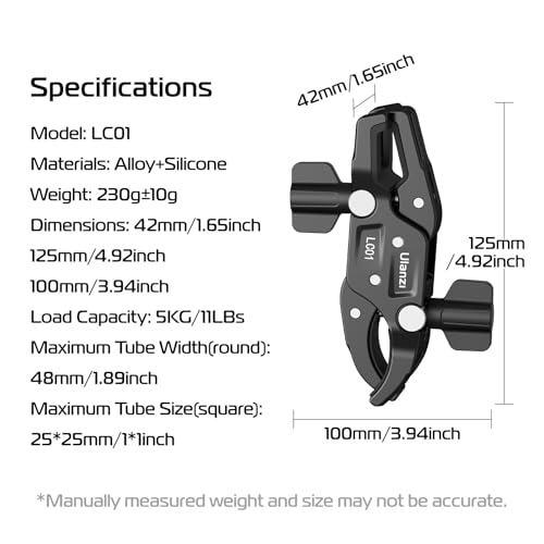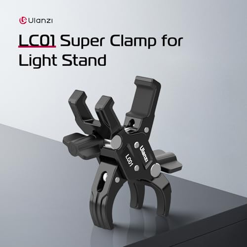ULANZI - حامل تثبيت بمشبك فائق لحامل الإضاءة والكاميرا المزدوجة والشاشة من اولانزي، محول ذراع سحري لحامل إضاءة استوديو الصور، عاكس التصوير الفوتوغرافي، حامل بوم الصور، قضبان متقاطعة