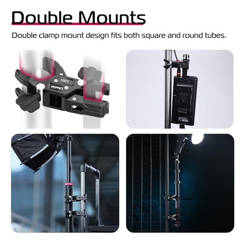 - مشابك مزدوجة لحامل الإضاءة تناسب المصابيح المربعة أو المستديرة للحصول على خيارات تركيب متنوعة.