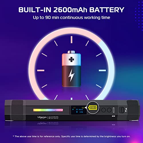 ULANZI - عصا إضاءة RGB VL110 من اولانزي، عصا إضاءة محمولة للكاميرا، شريط إضاءة أنبوبي ليد لتصوير الفيديو، قابل للتعتيم 2500-9000 كلفن، بطارية CRI 95+ 2600 مللي أمبير في الساعة مع جذب مغناطيسي للتصوير