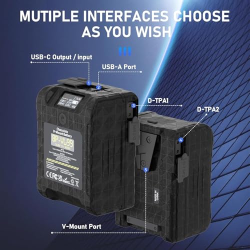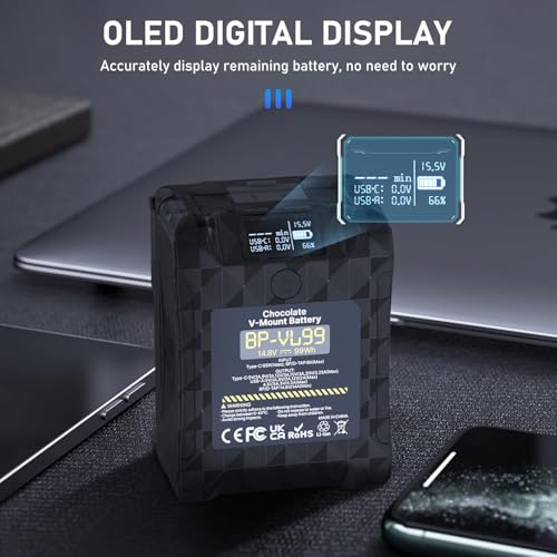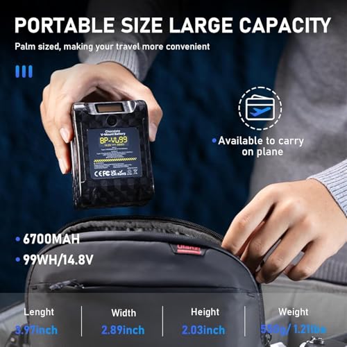 ULANZI - اولانزي بطارية VL99 6700mAh 99Wh 14.8 فولت صغيرة على شكل حرف V تدعم شاحن سريع 65 واط PD USB-C مع 2*D-TAP، منفذ USB-A، تيار مستمر، لبث الفيديو والكاميرا وكاميرا الفيديو والشاشة وصانع الافلام