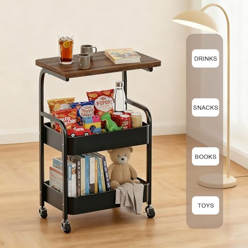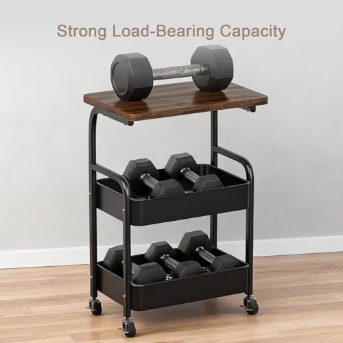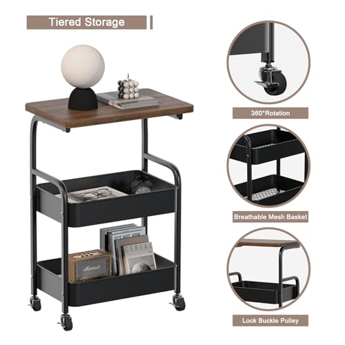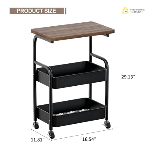 ULIKEUS - عربة دوارة من يوليكيوس مع طاولة خشبية من 3 طبقات من المعدن، منظم تخزين بعجلات قابلة للقفل للمطبخ والمكتب وغرفة النوم