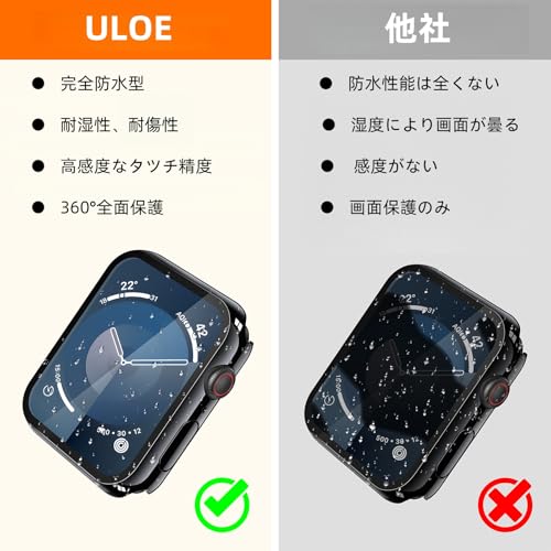 ULOE - جراب مقاوم للماء مصنوع من البولي كربونات وزجاج مقسى بدرجة صلابة 9 ونفاذية عالية وسهل الارتداء ومضاد للصدمات وبصمات الاصابع والخدوش من اولوي لساعة ابل سلسلة 7 و8 و9 مقاس 45 ملم